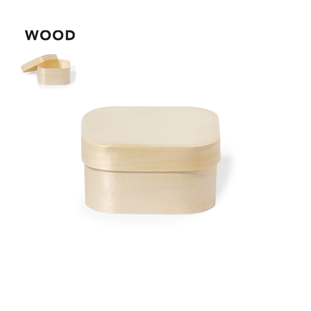 Presentation box in square format, made of natural wood with matching lid.