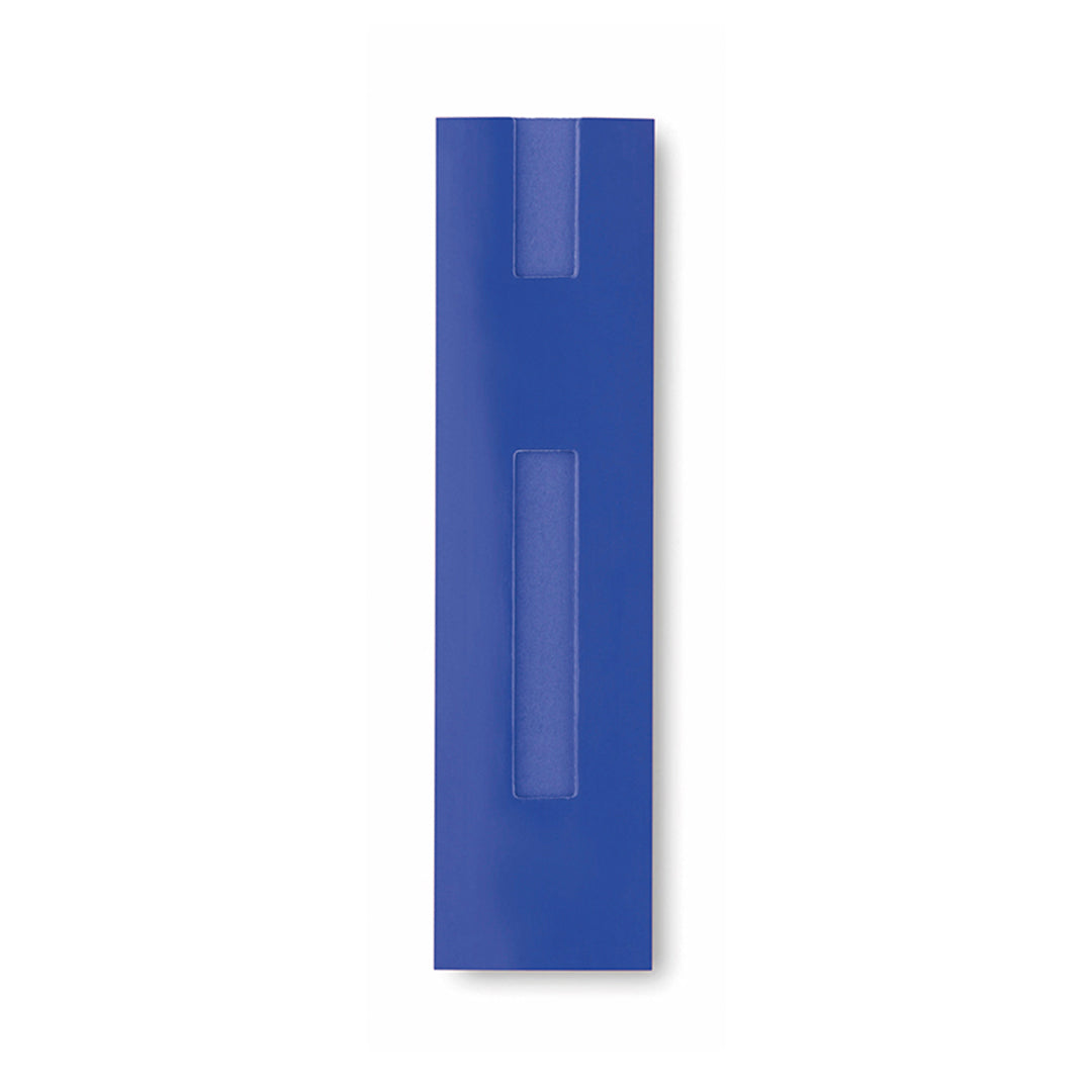 Ball pen sleeve in resistant, brightly colored cardboard with window design.