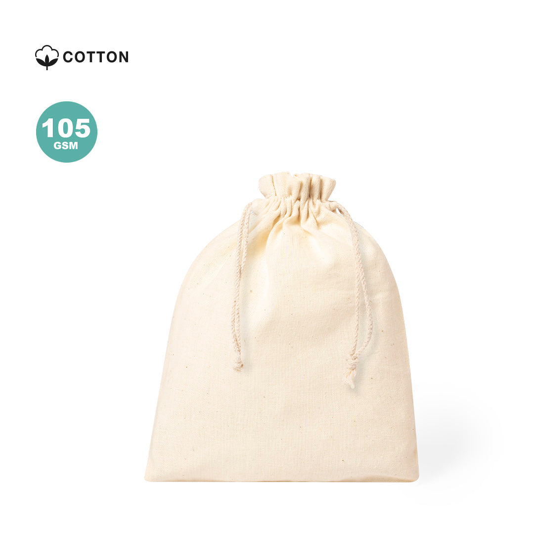 Nature line bag in cotton 105g/m2. Size 15x21 cm, with stitched finishing and self closing strings in cotton.