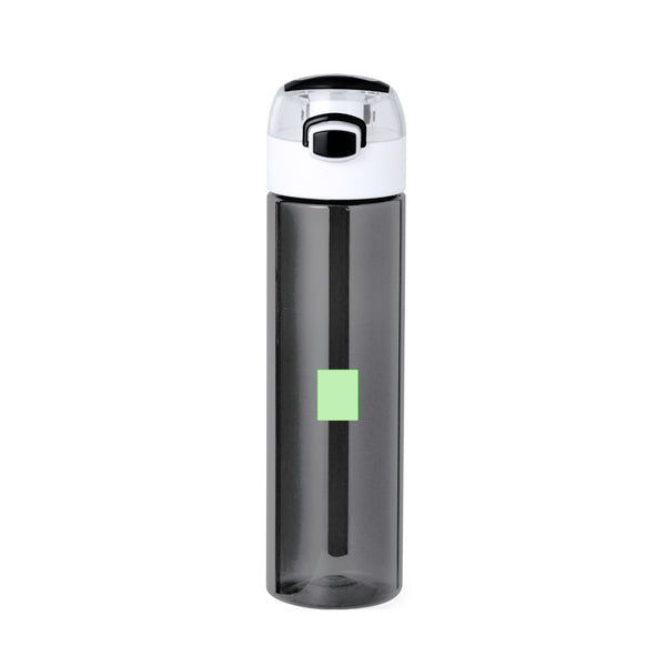 Bottle made of Tritan with a capacity of 650 ml. Ingenious spring-loaded lid, easy to open by pressing the front button, with safety lock. Optimal sealing of the screw cap and handle for convenient carrying. Available in a wide range of colours and presented in an individual kraft design box.