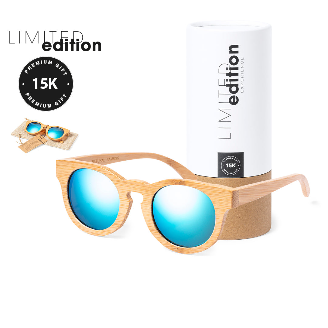 Sunglasses with exclusive design Limited Edition. Elegantly designed bamboo frame and arms, with mirrored lenses. Carrying pouch with drawstring closure and UV 400 protection.Presented in a Limited Edition Experience case, with unique design and protected by industrial property rights. Recycled cardboard card with Limited Edition description included.From the perfect combination of exclusivity and design comes Limited Edition, a special collection of limited edition promotional ideas. A new concept, inspired by the fusion of premium items with the latest trends, in batches of limited units, offering a unique, exclusive and unforgettable gift experience.