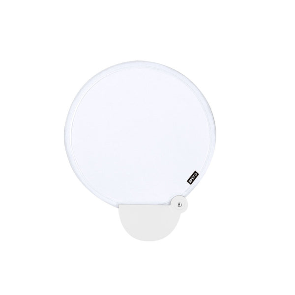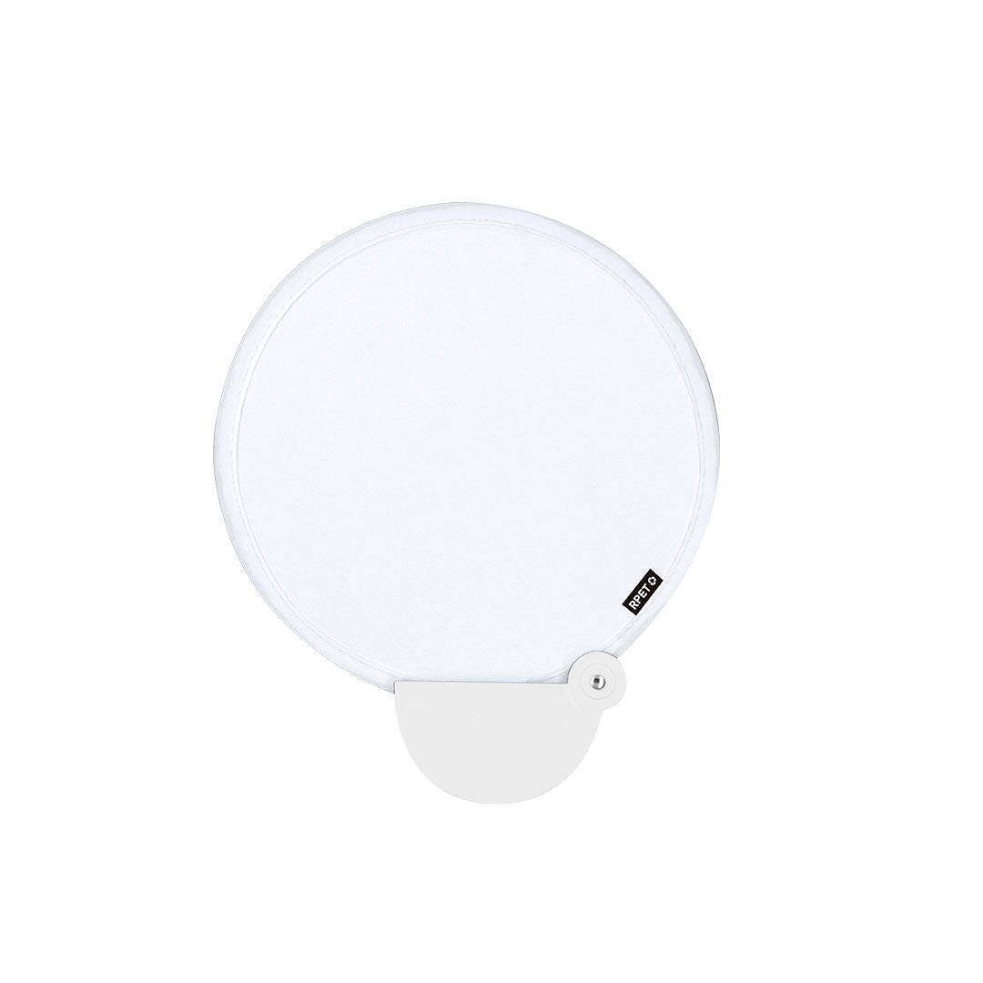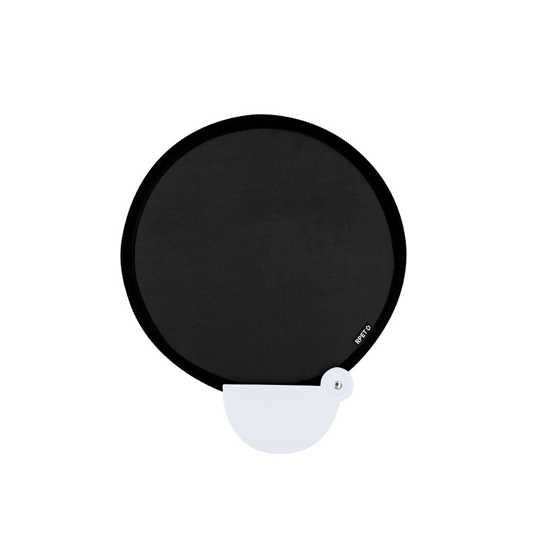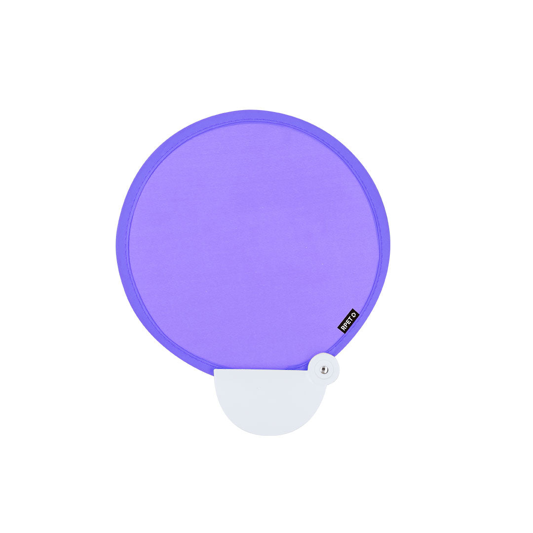 Foldable fan in RPET. Easy to carry thanks to the folding system, includes RPET distinctive label. RPET material is made from recycled plastic to promote the reuse of plastic waste and help the planet's sustainability.