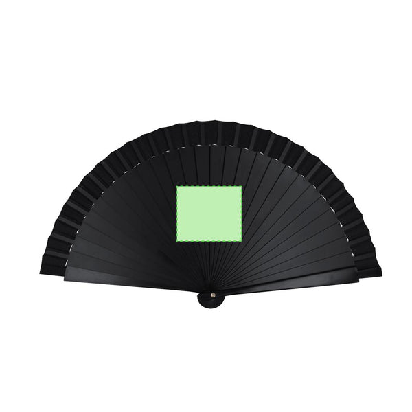 Fan with sticks in PP and matching 210D polyester fabric. With a sturdy and lightweight design.