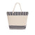 Thermal bag made of durable RPET material with aluminum interior, ideal for maintaining the temperature of food and beverages. With natural striped design matching colors. Includes zipper closure for added security and long cotton handles in rope format, reinforced with sturdy metal rings.