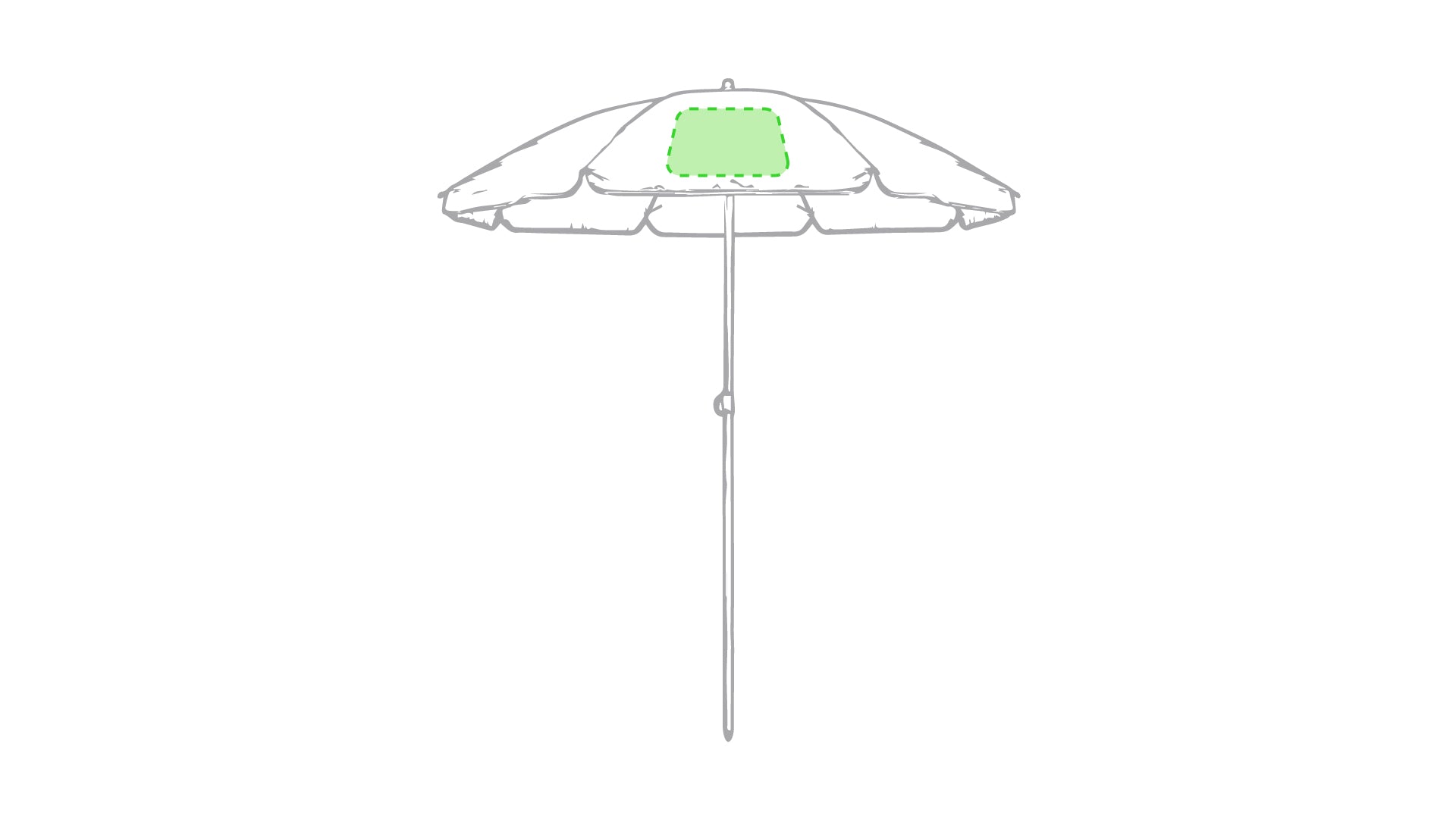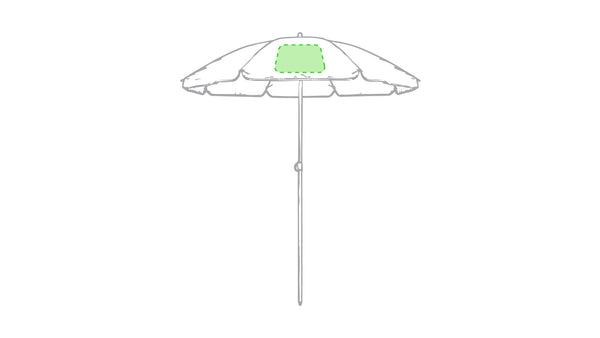 Beach umbrella of 8 panels in resistant nylon and silver-grey inside with UV protection. In a wide range of bright tones, 150cm in diameter, with side skirts with piping and metal coated tubes in white color. Adjustable in height and presented in a nylon sleeve with shoulder strap.
