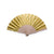Fan with ribs in natural wood and polyester fabric with shiny finishing. Available in golden and silver colors and presented in an individual box.