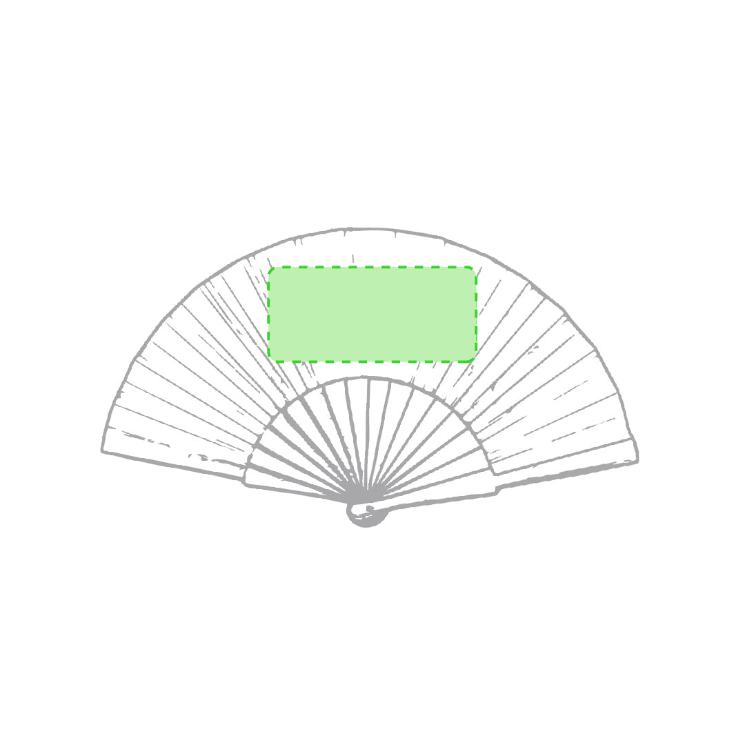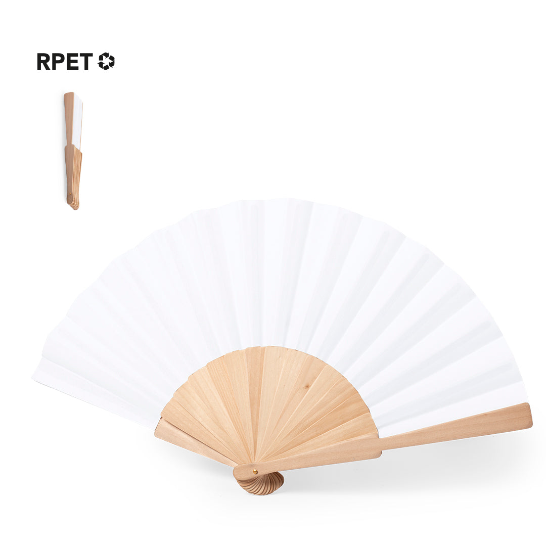 Nature line fan with wooden ribs and fabric in RPET material, obtained from recycled plastic materials, to encourage the reusing of plastic residues and contribute to the Earth’s sustainability. Presented in an individual, eco design box.