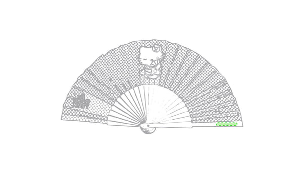 Fan by Hello Kitty with ribs in natural wood and an original fabric design with the kitty brand. Presented in an individual box.