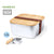 1.4 l capacity lunch box, with square design and made in stainless steel. With hermetic lid in bamboo and elastic closure band. Presented in an individual box with kraft design.