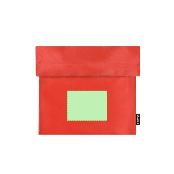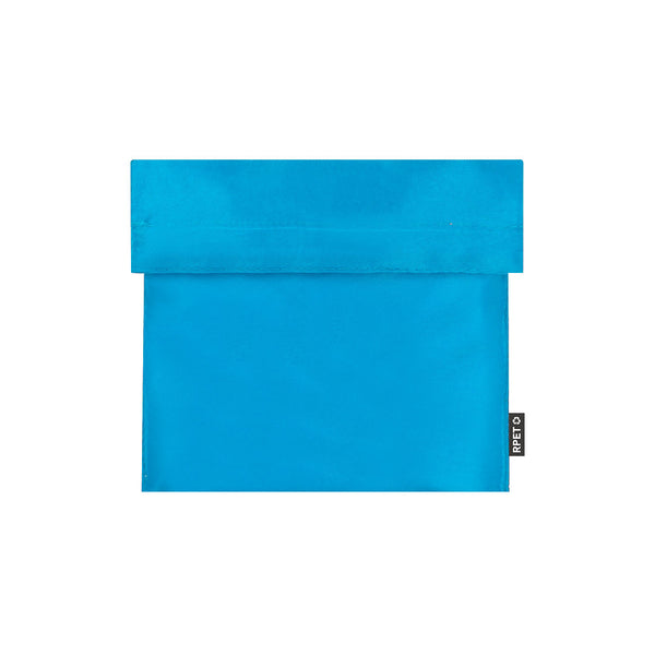 Thermal snack holder made of RPET 210T polyester. Isothermal interior in PEVA, with velcro closure and external label with RPET designation.RPET material is made from recycled plastic to promote the reuse of plastic waste and help the sustainability of the planet.