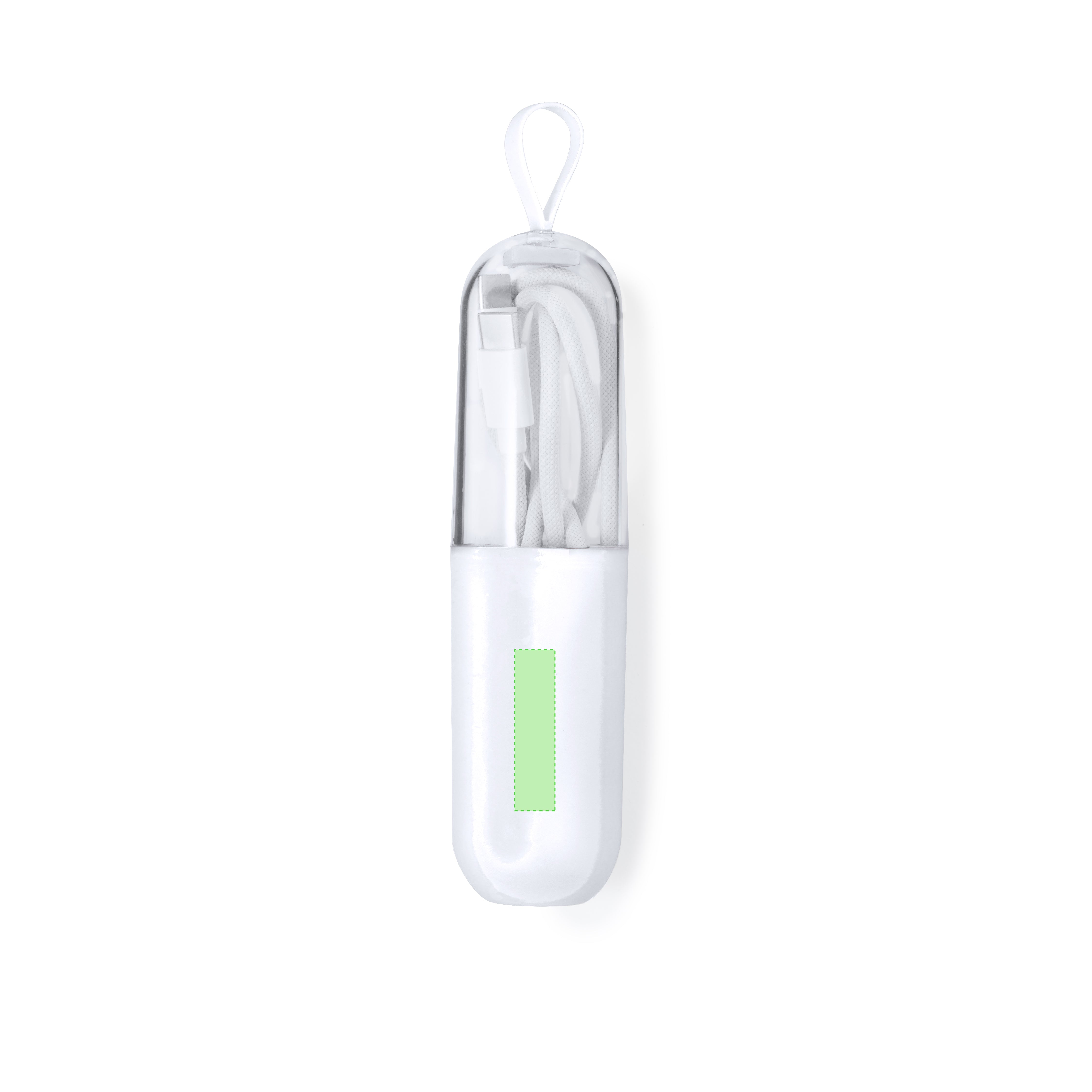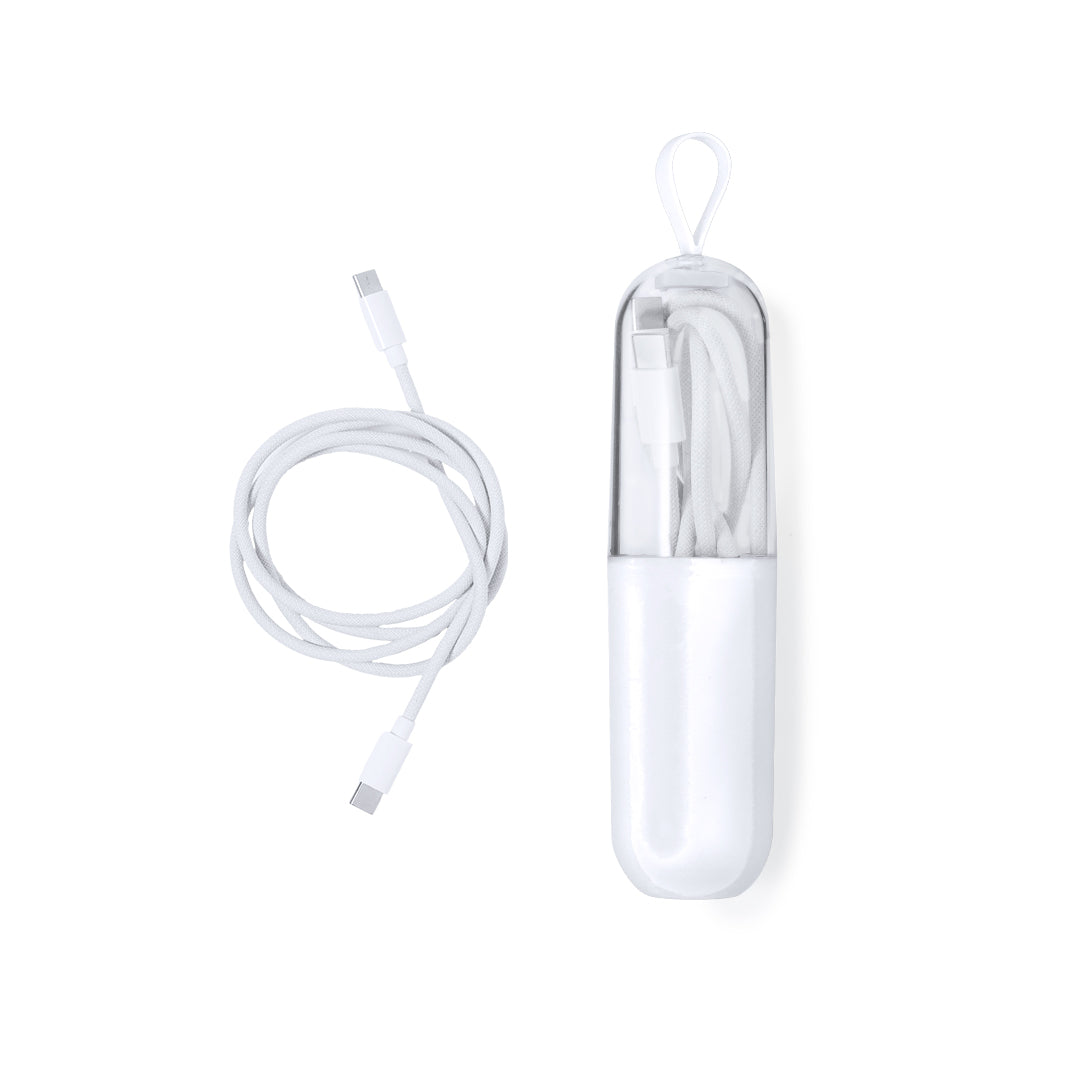 Charging cable with dual Type C connection. 65W of power and suitable for data transfer. 100cm long, with aluminium connectors and presented in an attractive case with one transparent and one opaque part. With carrying handle and presented individually in a recycled bag.