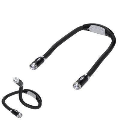 Ergonomic design lamp, made of durable ABS with a flexible body to direct the light according to your needs. Equipped with 4 LEDs, with ON/OFF button and powered by 2 AAA batteries (not included). Ideal for night reading, precision work, repairs and activities where focused light and hands-free use are required.
