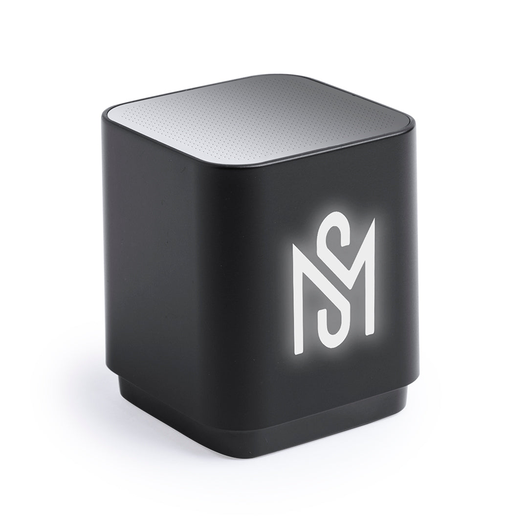 Speaker with Bluetooth® connectivity, inside LED light and body especially designed for laser printing, illuminating the logo. 3W power and hands free function. Rechargeable via USB cable -included- and presented in an attractive, individual design box.