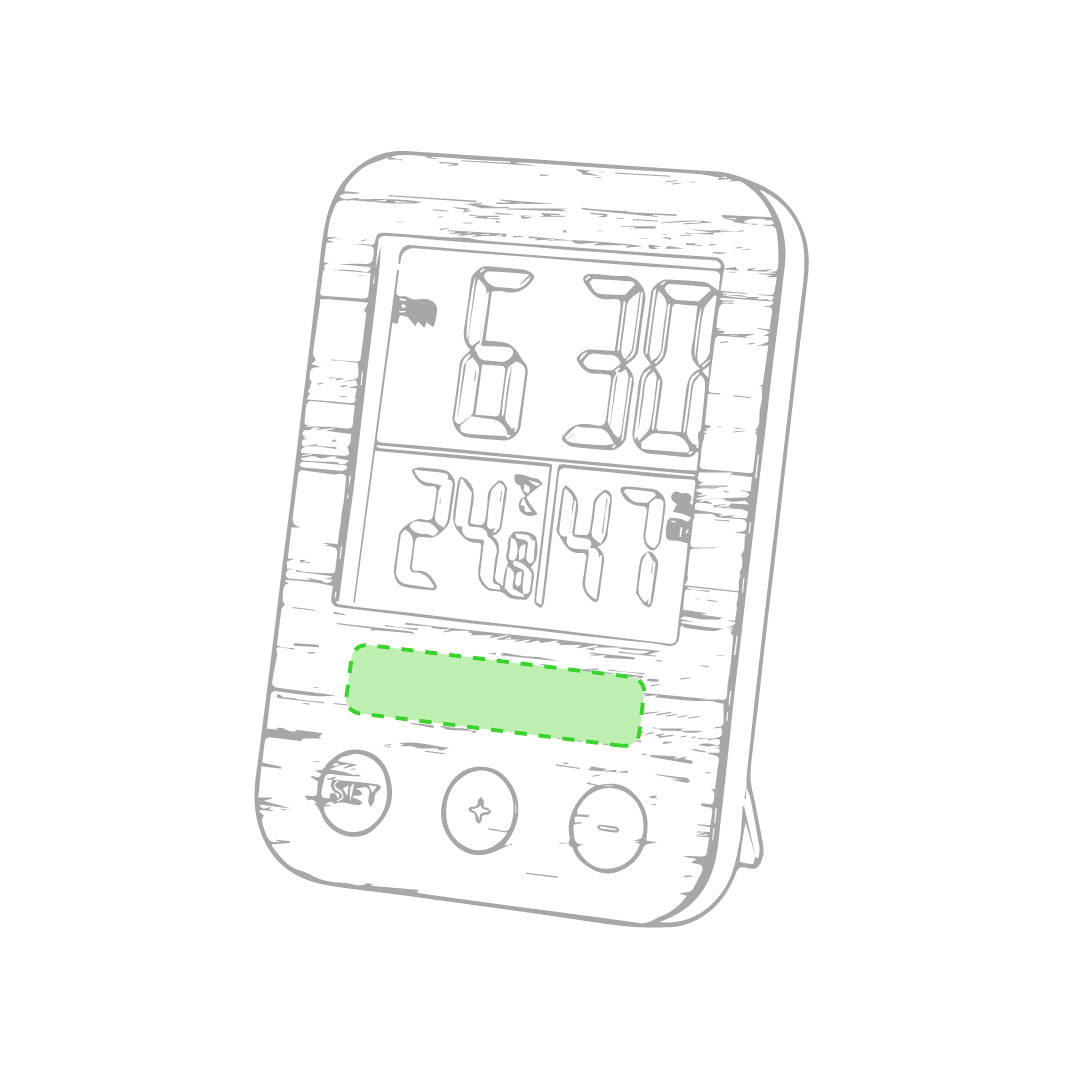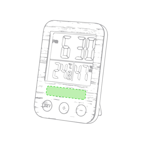 Weather station in nature line with front panel in bamboo. Functions hygrometer and thermometer. Battery powered (2xAAA not included) and presented in an attractive, individual, eco-design box.
