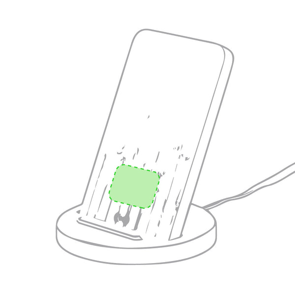 Wireless charger with smartphone holder function. Manufactured in combination of natural cut bamboo pieces and limestone cement, a conglomerate formed by the mixture of natural materials, mainly ground limestone and water, obtaining a material of great consistency and durability. USB charging cable in matching color, compatible with devices equipped with wireless charging technology. Safety protection to avoid overheating, overcharging and short-circuiting. Presented in an attractive design box.