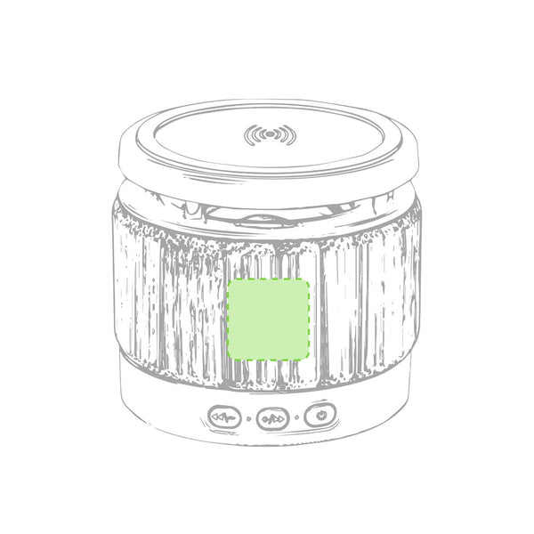 Bluetooth® nature line speaker with integrated 5W wireless charger and compact design. Made of a combination of bamboo and ABS materials, with an elegant two-color finish. Bluetooth® 5.0 and 3W power connection. Rechargeable via USB cable - 150 cm included - and presented in an attractive eco design box. Instruction manual available in Spanish and English.