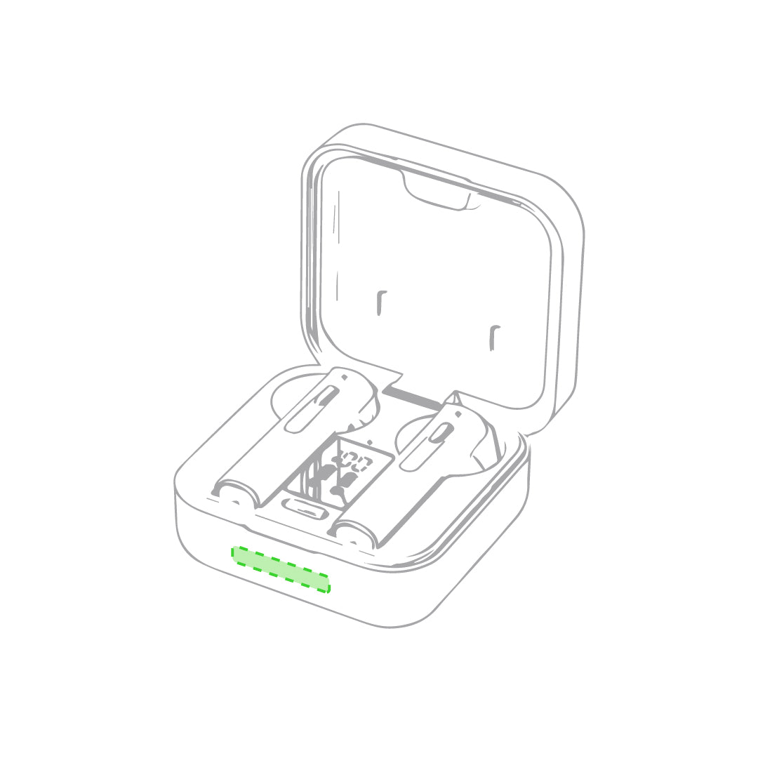 Earphones in stylish white finish with Bluetooth® 5.0 connection. Solar charging panel integrated in the lid and inside LCD display with charging status indicator. Ergonomically designed, with integrated control button on the earpiece and matching base. Hands-free function and rechargeable with solar power or via micro USB cable -included-. Presented in a premium, hinged-opening individual case and inside an attractive design box, with user manual in English and Spanish.