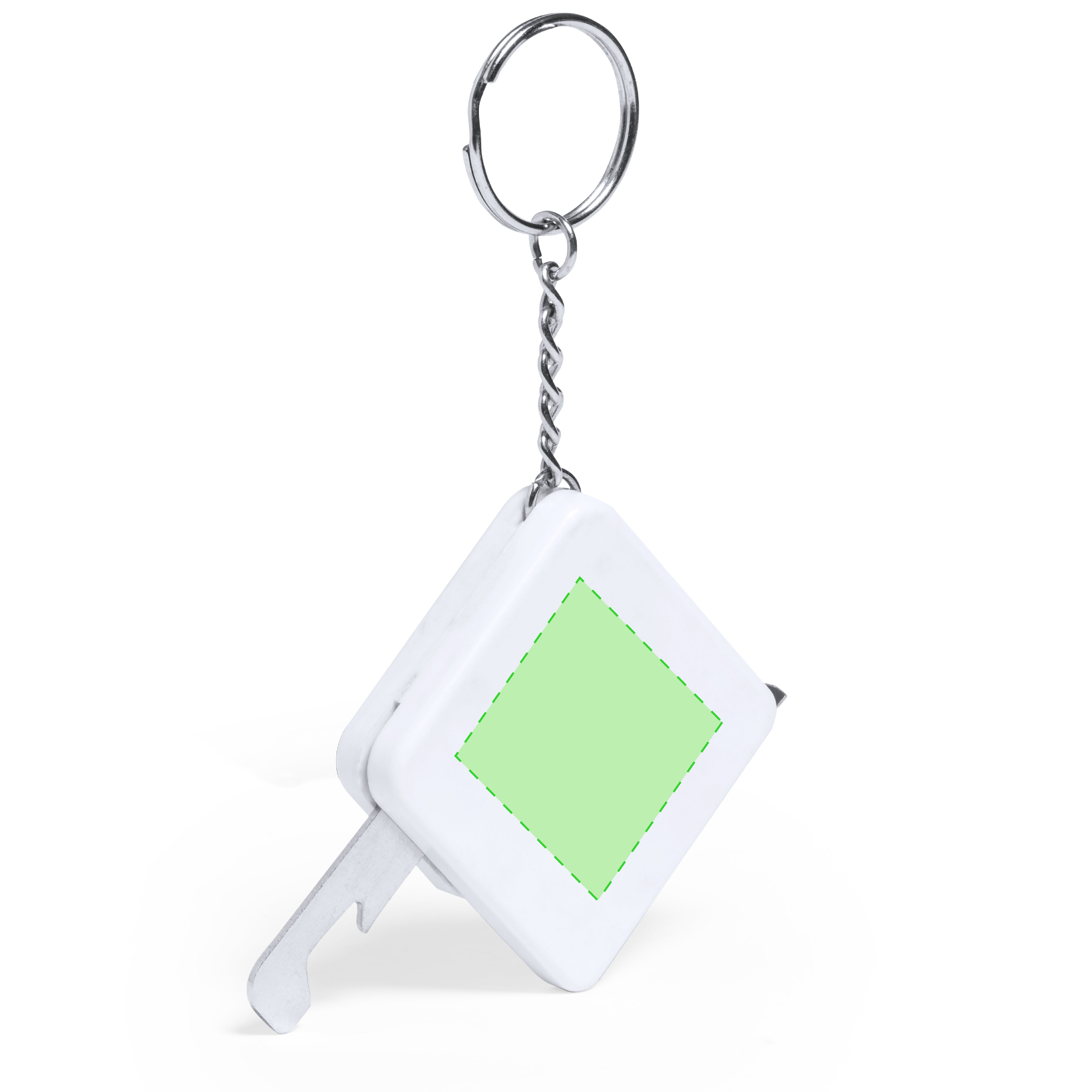 1 m flexometer in resistant white ABS, with metal opener integrated in the body. Wide branding surface and chromed metal ring. Blade with measurements in centimetres and inches.