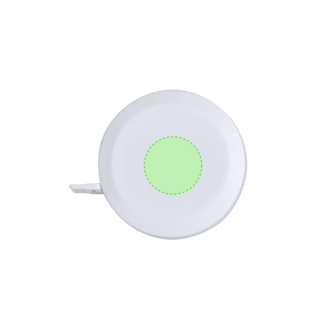 PVC tape measure 150 cm long with a retractable mechanism and stop button. Scale printed in black in cm and inches.