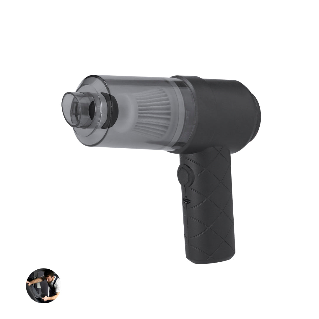 Cordless handheld vacuum cleaner, with a power of 30W and equipped with a rechargeable battery of 1200 mAh. Includes 3 practical accessories:- Removable dust filter for easy emptying and maintenance.- Long nozzle, perfect for reaching narrow and difficult areas.- Brush accessory, designed to clean delicate surfaces or those with stuck dust.Designed for comfortable handling, it features an ergonomic grip and an on/off button. Its structure is water-resistant and can be practically recharged via USB Type C.