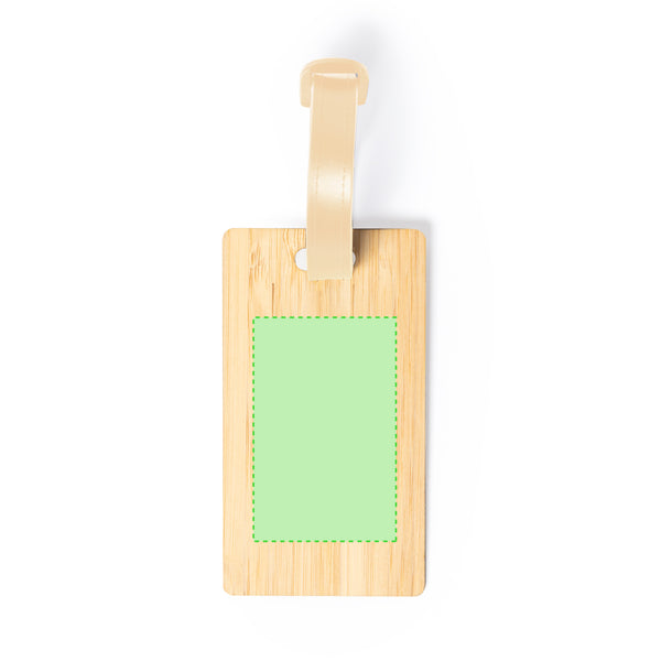 Nature line luggage tag made of bamboo. Strap with metal buckle closure and ID data in English, with blank opposite side for branding.