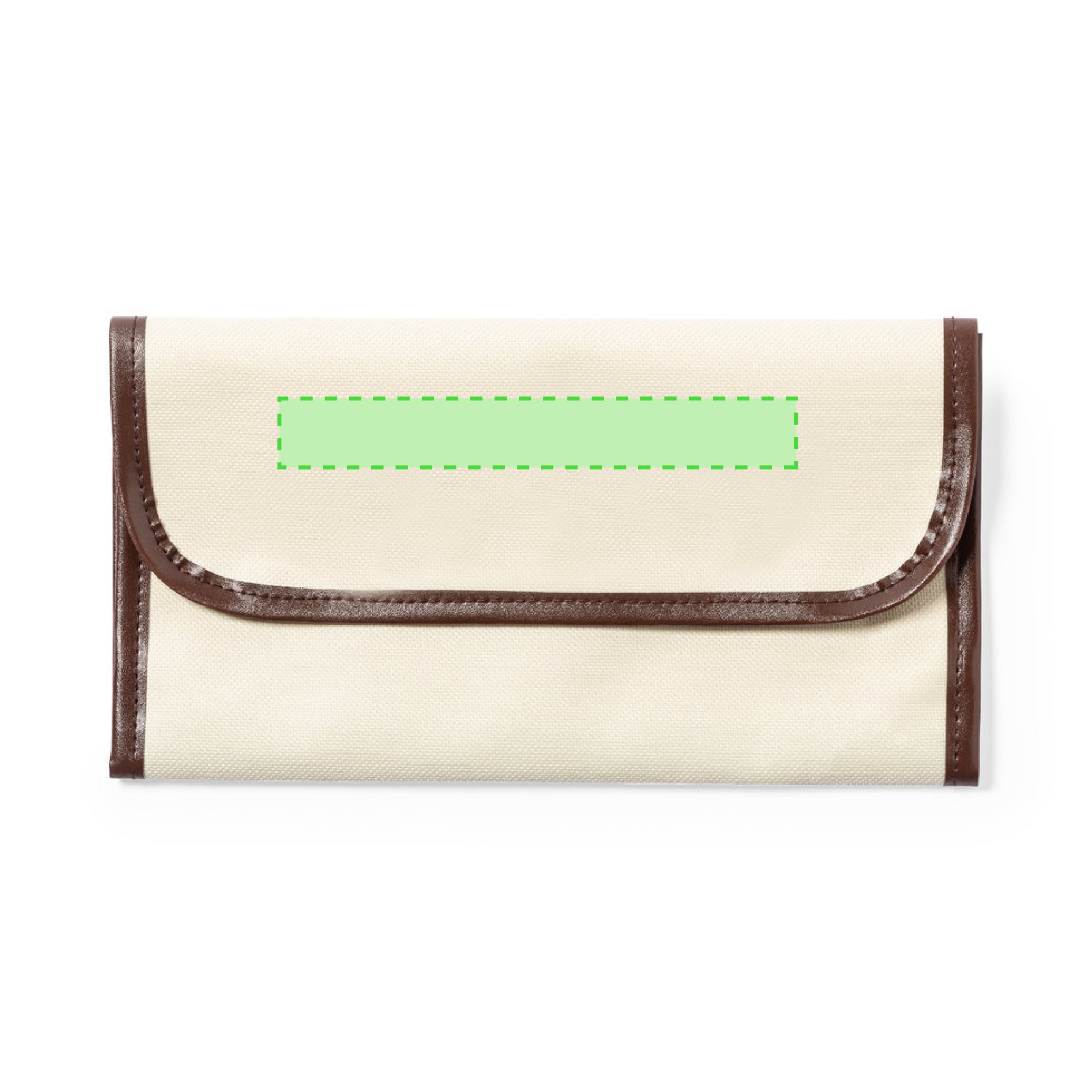 Travel document holder made of durable 600D in natural finish, with brown PU leather piping and reinforcements. Flap with velcro closure and multiple inside compartments.