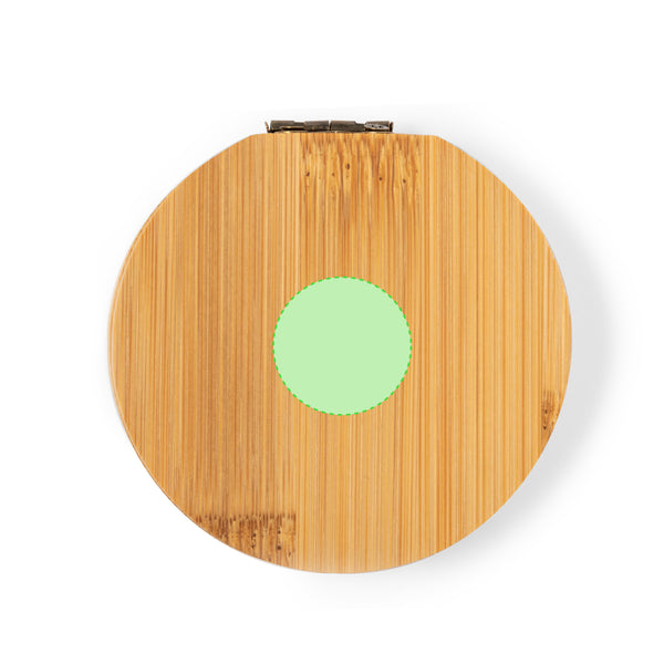 Practical sewing set, presented in a bamboo case, with mirror inside and magnetic clasp. Contents: 2 needles.Thread in 6 different colours.2 buttons.1 safety pin.1 thread tool. Presented in a kraft design box.