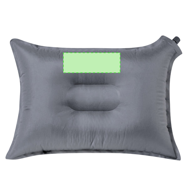 Fantastic self-inflating pillow in soft polyester. Portable and with convenient self-inflating system: by unscrewing the nozzle in one of its corners it will automatically start to be filled with air, allowing the user to adjust the pressure. Easy to store thanks to its RPET sleeve, with RPET logo included.RPET material is made from recycled plastic, thus promoting the reuse of plastic waste and helping the sustainability of the planet.