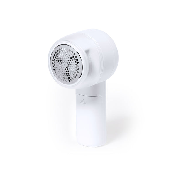 Practical hand-held lint remover. Comfortable to use and with an ergonomic shape that adapts to the hand. It is used by rubbing the metal area on the fabric until the fabric is softened. With compartment for storing the removed lint, easy to clean. Portable and powered by 2 AA batteries (not included). Presented in a kraft design box, with Spanish and English manual inside.