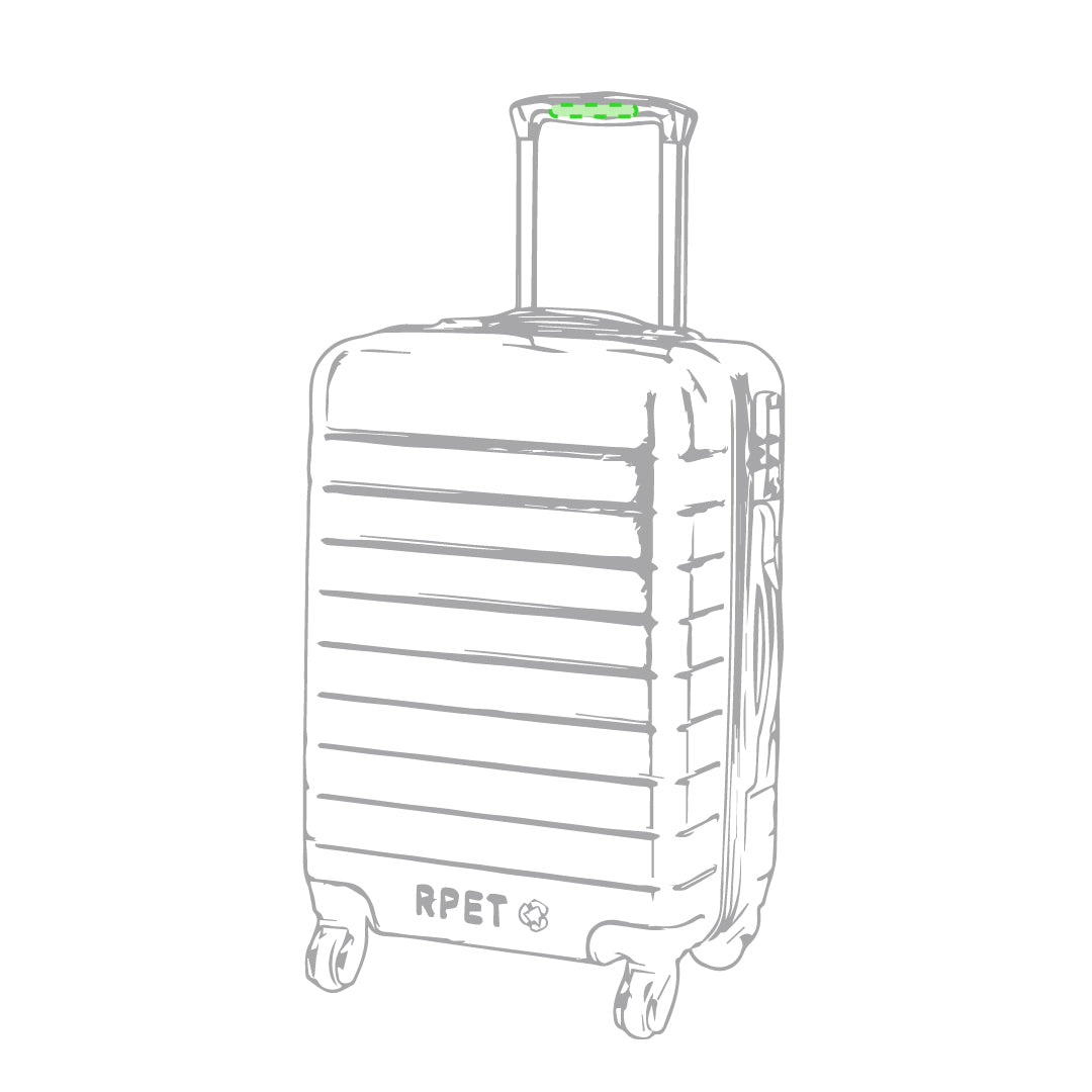 Impact-resistant, nature line, cabin trolley made of RPET material produced from recycled plastic, thus promoting the reuse of plastic waste and contributing to the sustainability of the planet. Telescopic carrying handle, with 4 swivel wheels and TSA security lock. RPET inner lining, with elastic fastening straps included. RPET emblem engraved at front.