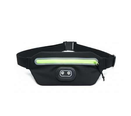 Fanny pack made of durable polyester. Main compartment with reflective zipper closure. On the front it includes a flashlight with 3 light intensities. 300mAh battery, with charging via USB cable. With buckle closure and adjustable strap, specially designed for sports and leisure activities.