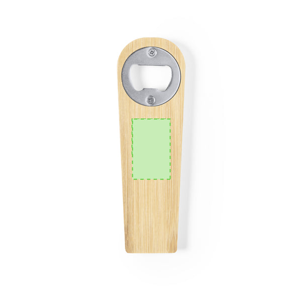 Genuine magnetic bottle opener of nature line, made in resistant bamboo. With integrated clip in the body and opening system made in metal.