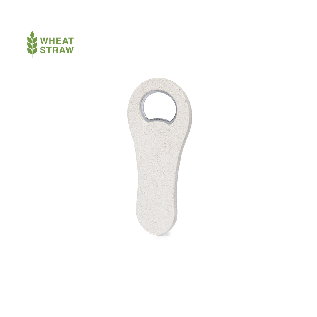 Bottle opener made of wheat straw. It has a magnet for attaching it to any metal surface. Presented individually in a Recycled paper bag.Wheat straw promotes the use of natural raw materials, thus reducing pollutant emissions.