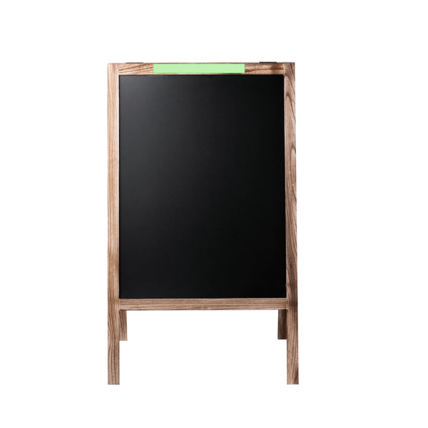 Multipurpose blackboard made of wood. Designed to fit in any environment and easy to transport as it is foldable. Large writing surface on both sides, with a total size of 106 cm in height and 59 cm in width. Presented in a kraft design box.