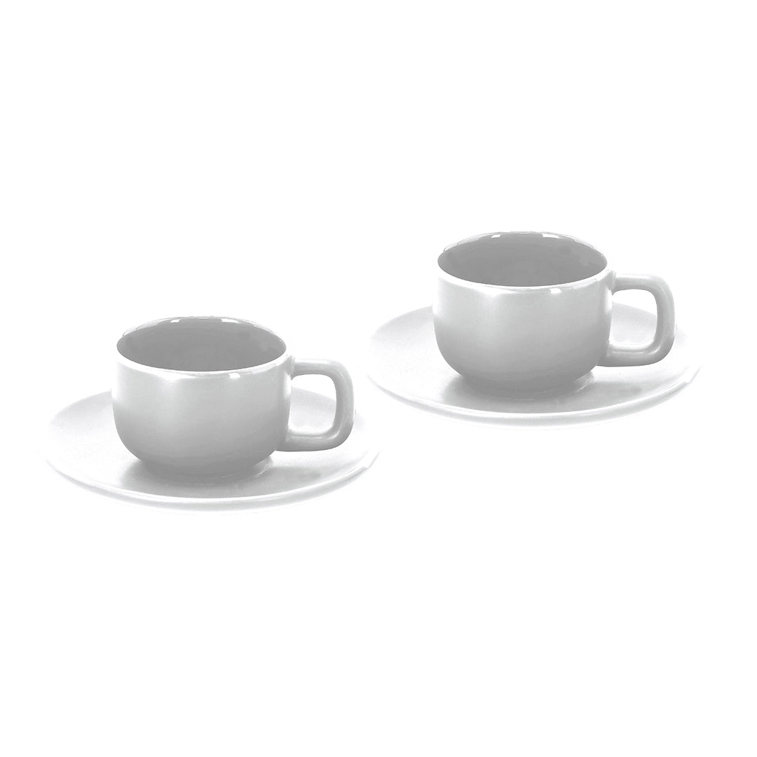 Set of cups with a capacity of 85ml made of ceramic. Each one includes a plate in the same color with a matte finish. Ideal for sharing moments with your favorite drink.
