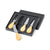 Set for cheese with stainless steel utensils with natural wood handle. Presented in an individual case with soft, die-cut inside foam.