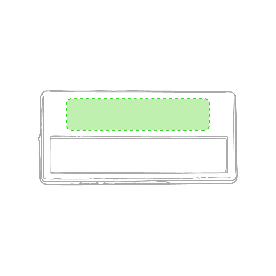 Name tag in shiny finishing. Rear side with double fixing system - metal clips and safety pin- for secure adjustment.