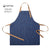 High-quality apron in heavy-duty fabric with denim finish. Fitting under the knee, with button adjustable neck strap and reinforced, brown color waist straps. Multiple pockets for convenient storage and access to utensils. Reinforced stitching and metal rivets.