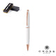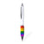 Rainbow ball pen, with multicoloured grip and white finish barrel. Push-button mechanism, with metal clip and chrome plated fittings. A ball pen to be proud of, in blue ink.