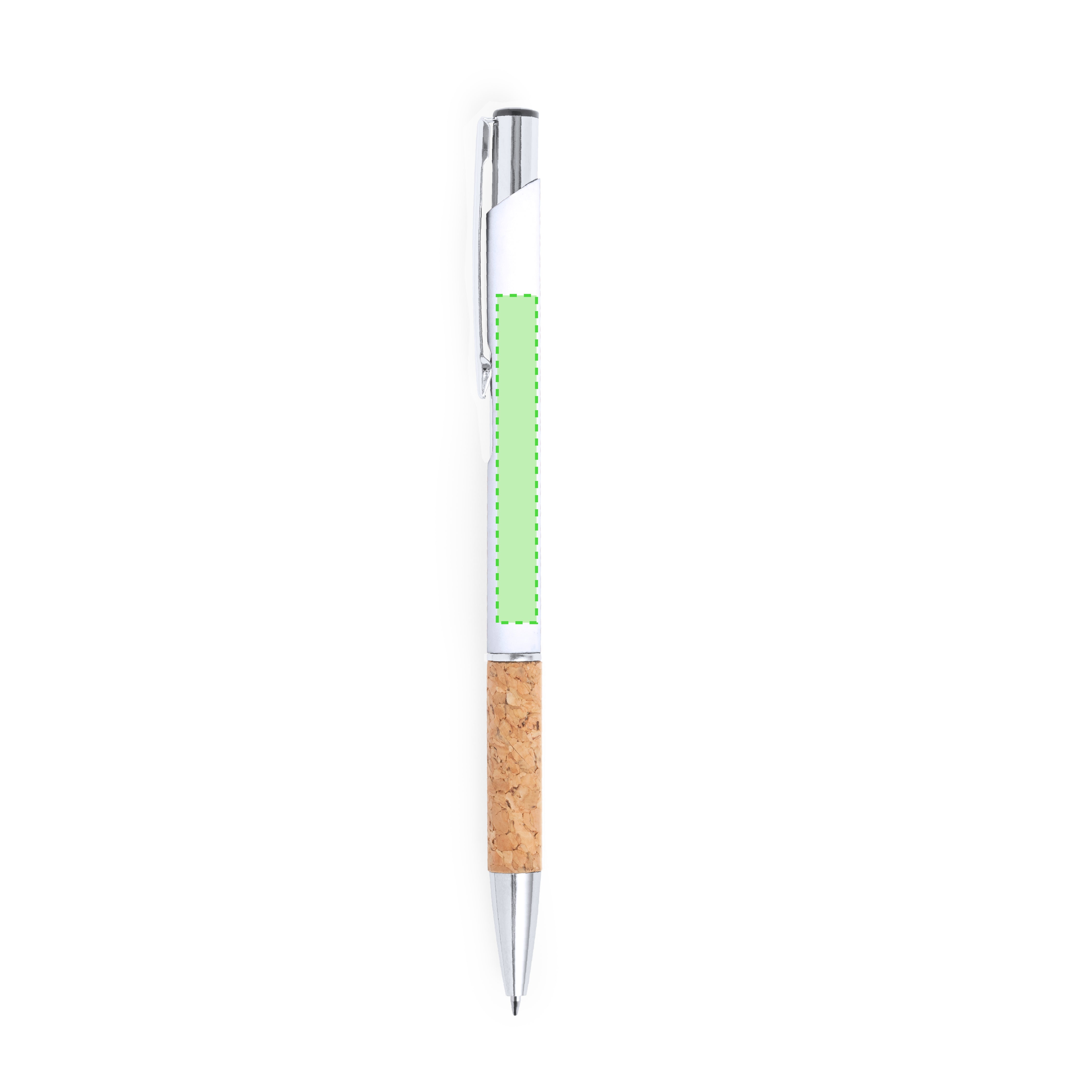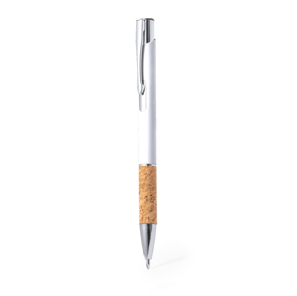Elegant ball pen in nature line, with push-button mechanism. Durable aluminium barrel with rubberised finish and cork grip, with barrel in a wide range of distinctive colours. Metal clip, with retractable push button and blue ink. Presented in an individual recycled pouch.Made with plant-based elements to encourage the use of natural raw materials and reduce pollutant emissions.