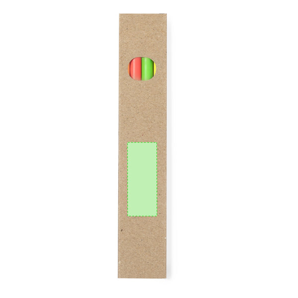Set of 4 pencils in Recycled cardboard box with window. Wooden pencils with cylindrical body in various fluorescent colours and leads in fun colours.