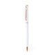 Excellent Aluminium ball pen with push-button mechanism. Durable matt-finished Aluminium barrel with decorative elements in elegant copper finish, with barrel in a wide range of distinctive colours. Metal clip, blue ink and jumbo refill. Presented in an individual recycled bag.