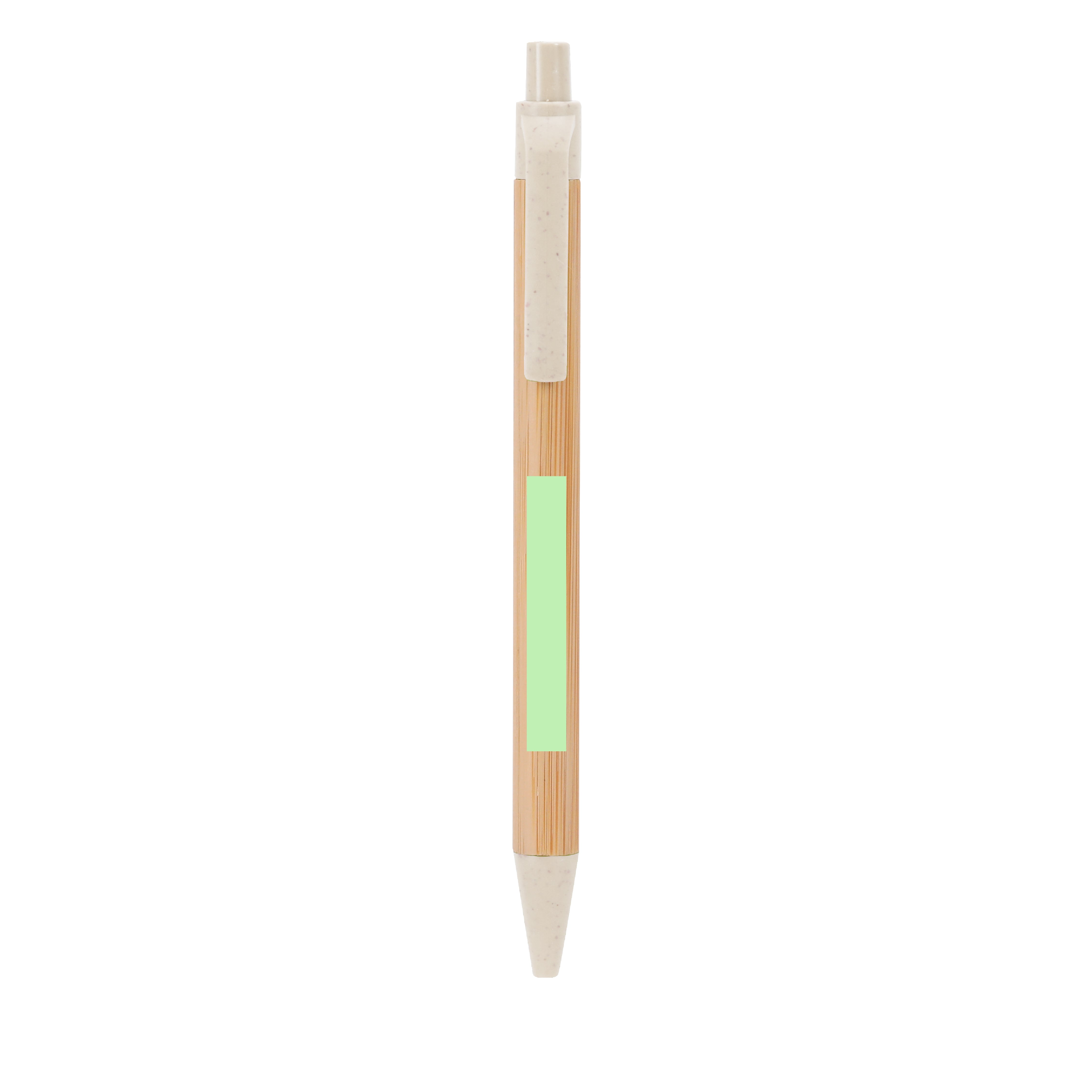 Pen made of bamboo in combination with wheat cane. Push-button mechanism and blue ink. Includes Wheat Straw badge.