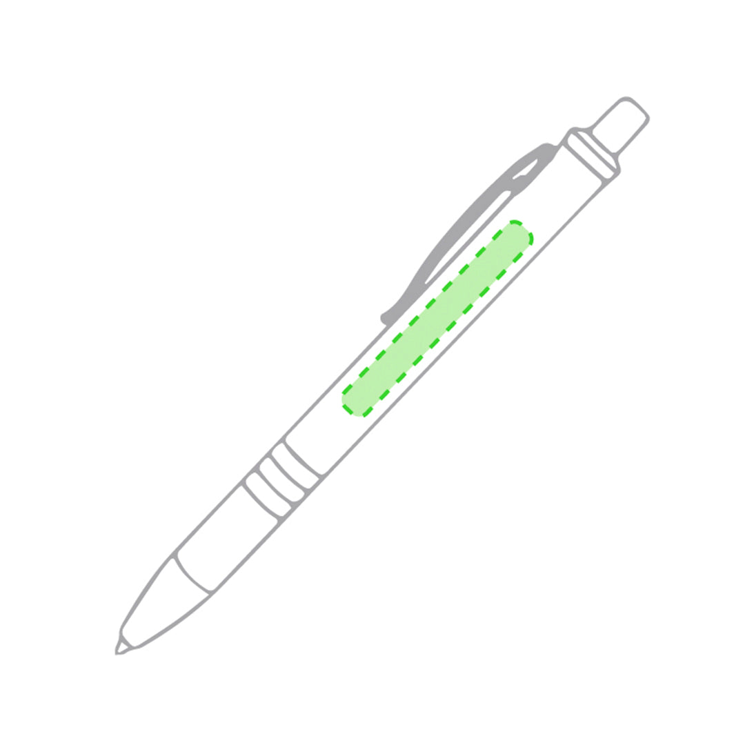 Push-uper ball pen in a stylish bicolor design with glossy silver details and a smooth body in glossy white with the national Spanish flag. With metal clip, jumbo cartridge and blue ink.