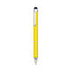 Push-up ball pen with bold tricolor design with brightly colored details and smooth body in solid white. With original matching color curved clip and comfortable grip. Blue ink.