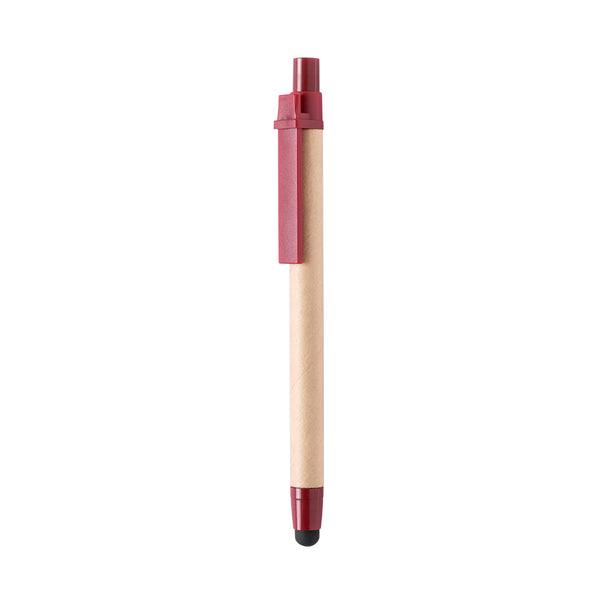 Push-up mechanism ball pen in an original body combination in recycled cardboard of natural color and accessories in bright tones with black pointer. Blue ink.