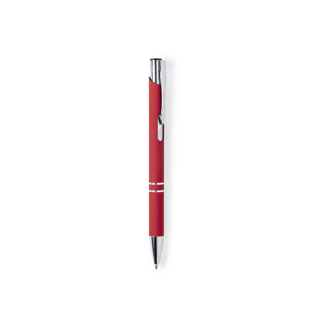 Ball pen with push-up mechanism in an elegant two color design. Aluminum body with rubber finishing, especially designed for laser printing, showing the logo in silver tone. Chromed tip, rings and metal clip. Available in a wide range of colors, with jumbo cartridge and blue ink refill.