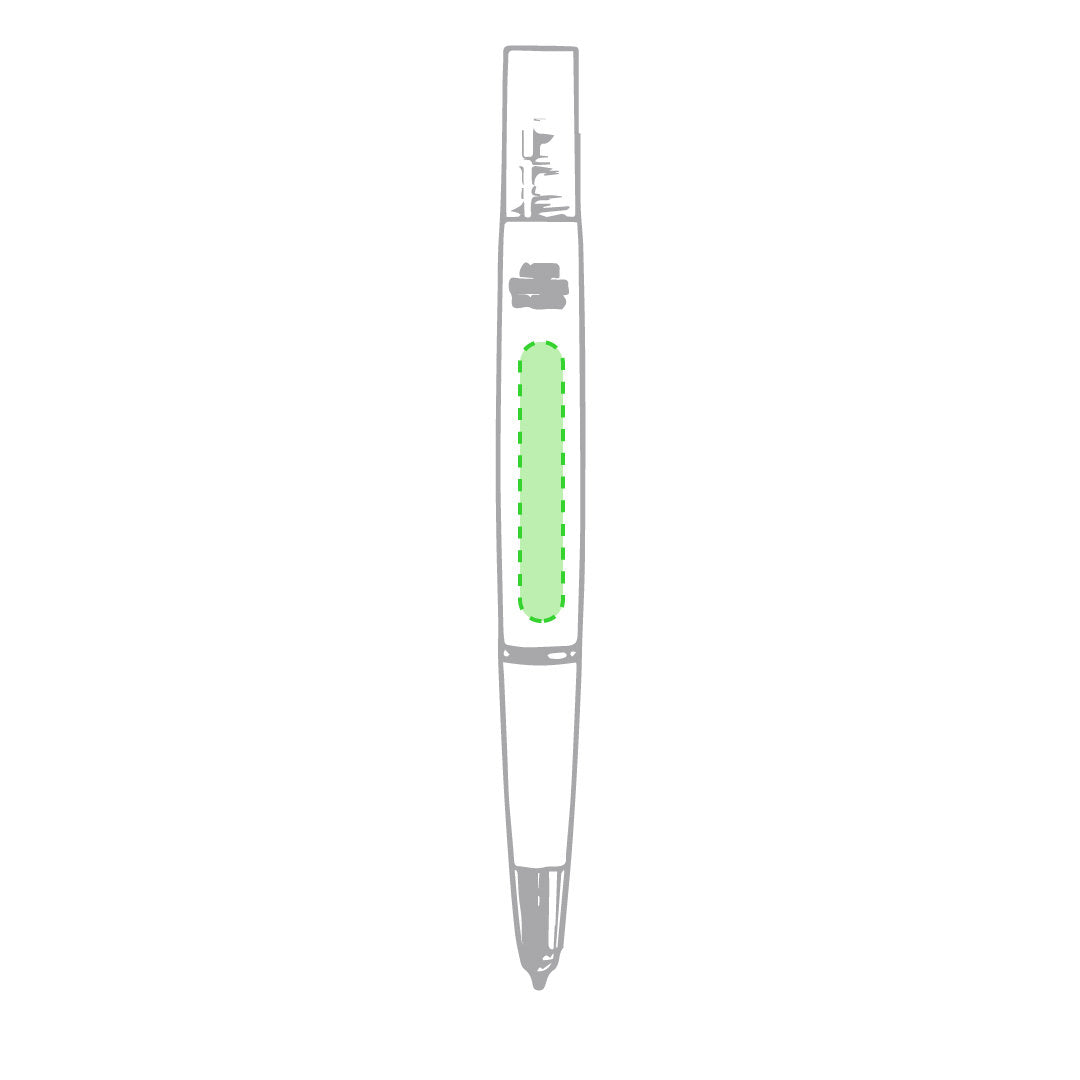 Antibacterial ball pen with rechargeable sprayer and protective hood, including grey color pointer. Made of resistant ABS with shiny finish. Elegant metal clip and blue ink refill. Sprayer capacity 3 ml. Liquid not included.Products with antibacterial treatments are able to drastically reduce the bacterial levels present on the surfaces of the materials, thanks to the addition of permanent static microbial agents, with high effectiveness in inhibiting and preventing bacterial contamination.Item according to the ISO 22196 standard, which determines the antibacterial activity in plastic materials and non-porous surfaces. This allows us to know the effectiveness of microbial inhibition that additives have on treated objects by means of a quantitave evaluation.