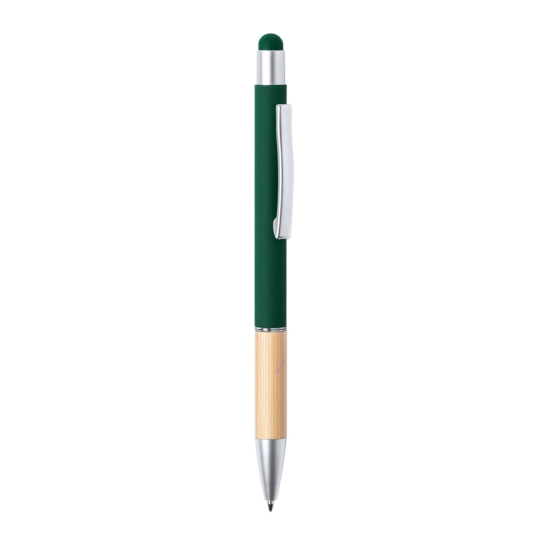 Nature line ballpen pointer with push-button mechanism. Elegant design with matt-finish aluminium barrel and bamboo grip, with matt-finish accessories. Metal clip and transparent ring, with blue ink refill. Available in a wide range of colours.