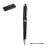 Ball pen by Antonio Miró in an elegant bicolor design and soft metallic body in sober black. With the brand logo on top of the ring, clip and tip in shiny silver finish. Presented in an individual black box with the brand logo. Jumbo cartridge with blue ink.